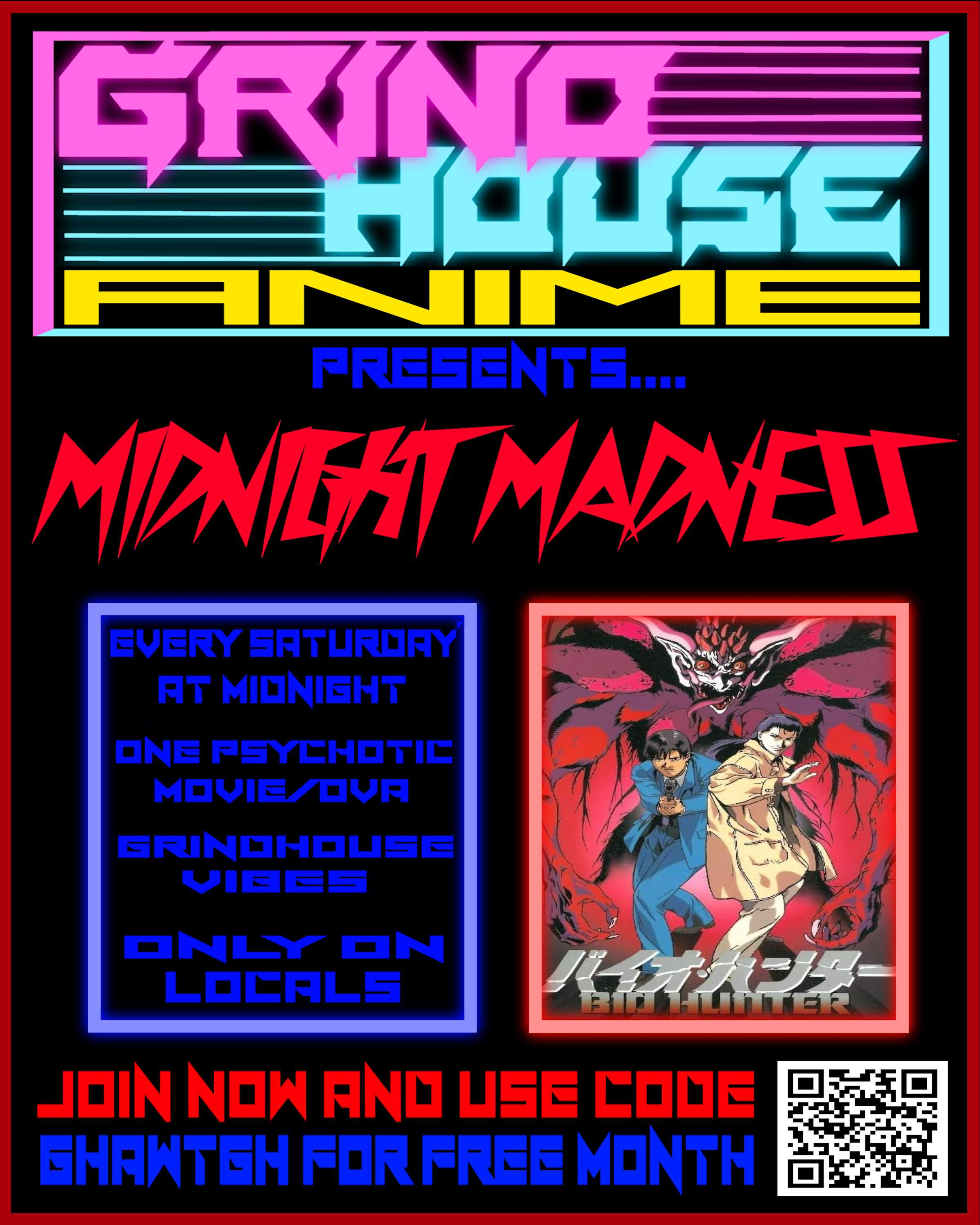 Welcome to GRINDHOUSEANIME: my weird, neon-lit corner of the internet where we watch the wildest, most unhinged anime together.